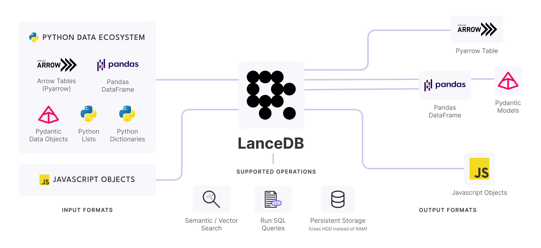 LanceDB integrates seamlessly with the modern AI ecosystem, providing connectors for popular frameworks, embedding models, and development tools. Read more about LanceDB Integrations.